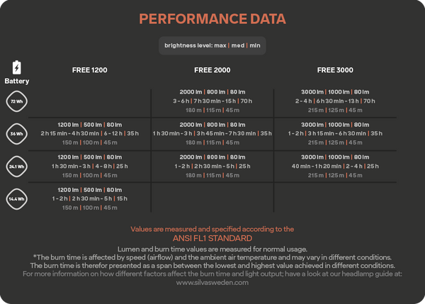 <p> Our Free series is made for flexible use regardless of model. You can easily move the lamp unit from the headband and instead attach it to you helmet or a handlebar. The more light (higher lumen) you want the more powerful battery you need to bring with you. If you want to use your headlamp for shorter runs or activities, a small battery is enough. But if you’re going to be out for a long time, it’s better to choose a larger battery and instead attach it to you helmet, to a handlebar or put it in your backpack with the included extension cable.<p>